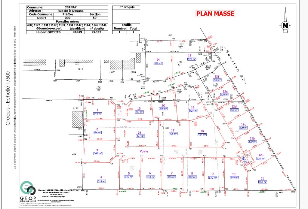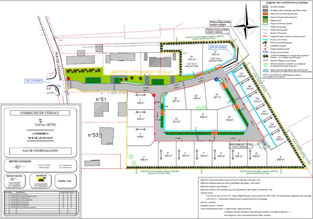 CERNAY, Rue de la Douane, parcelles viabilisées pour maisons individuelles, indivisibles, de 287 m² à 670 m², vendues libres de constructeurs et d'architectes.